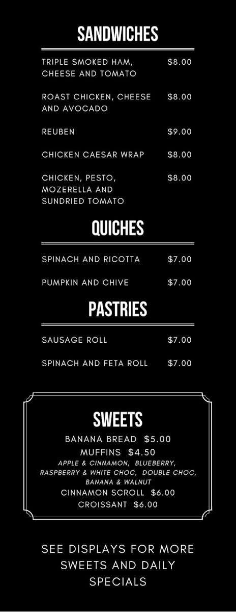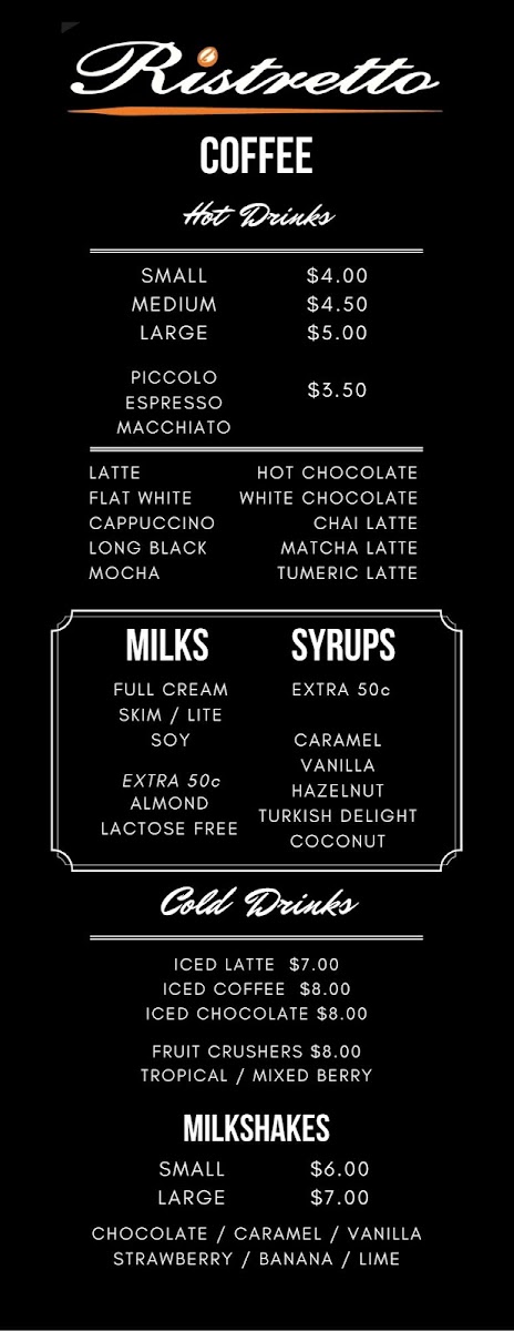 Ristretto Bathurst Menu